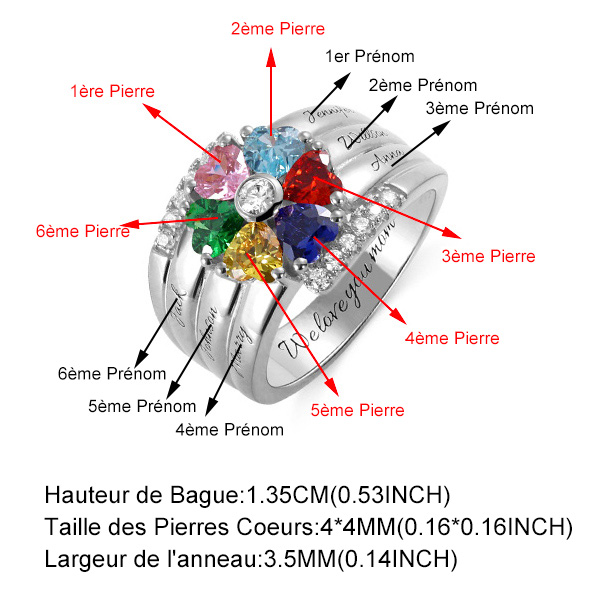 Bague d'Amour-6 Pierres de Naissance et Gravure-Argent