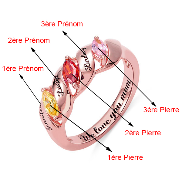 Bague Tordu-3 Prénoms et Pierres de Naissance-Plaqué Or Rose