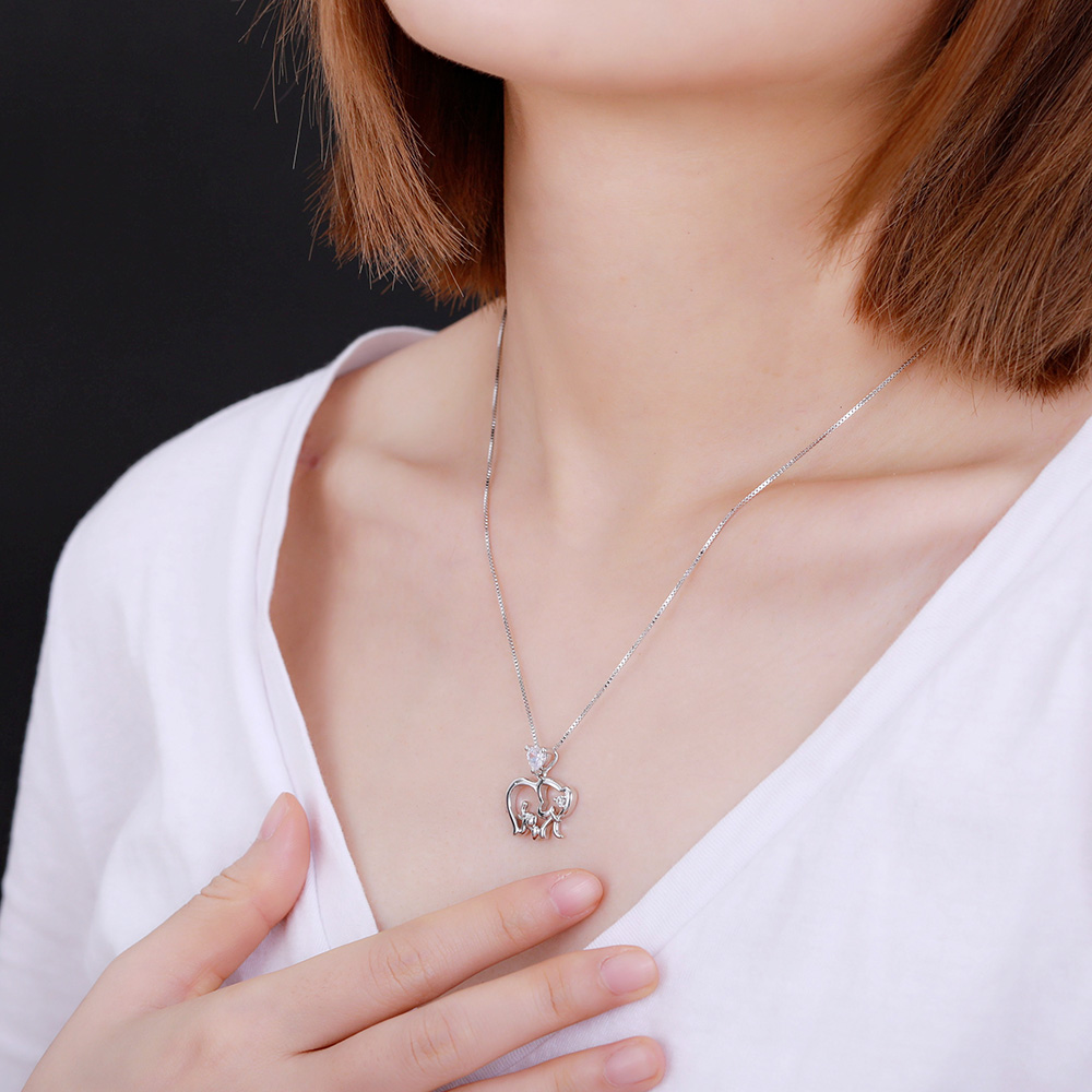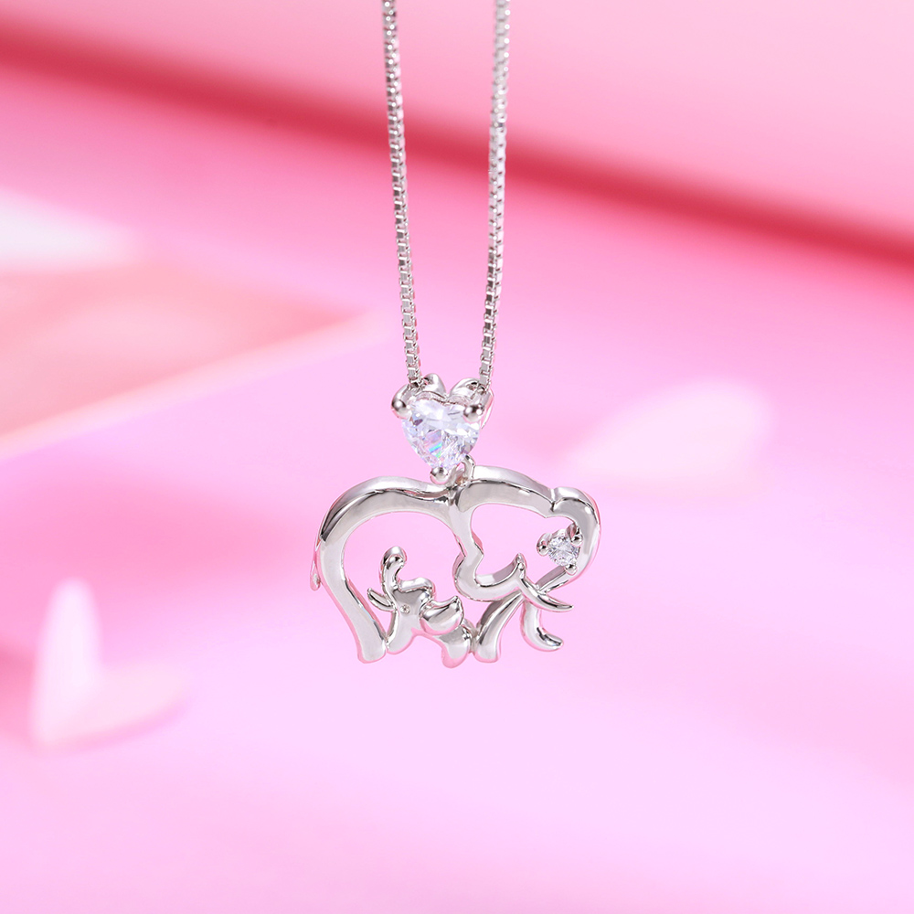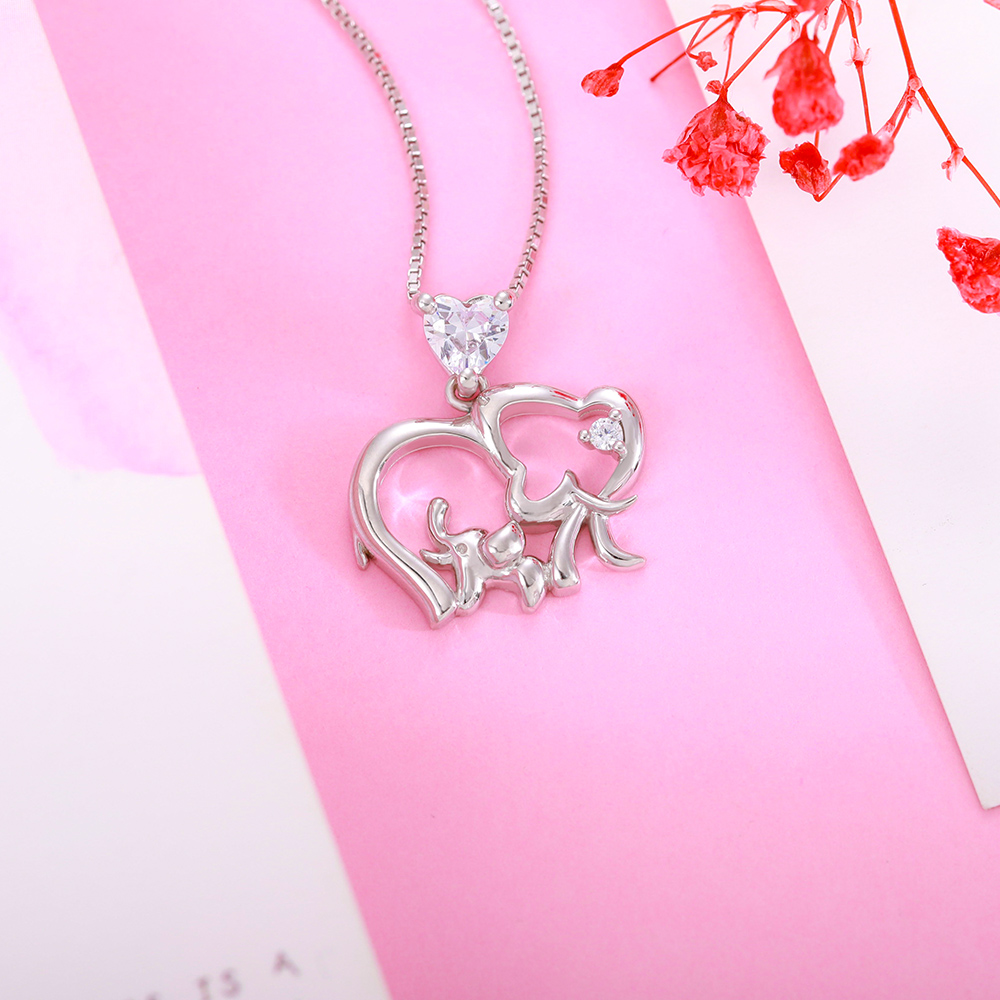 Blotti dans les bras de sa mère, le bébé d'éléphant est heureux et confortable. Le design de ce pendentif signifie l'amour désintéressé de votre mère qui vous protège tout le temps. Bijou scintillant en ajoutant une touche de conception d'amour serait le merveilleux cadeau en vue d'exprimer votre amour. Attrapez la bonne chance en offrant cet accessoire brillant à votre maman, et elle sera charmante et élégante en portant ce collier.